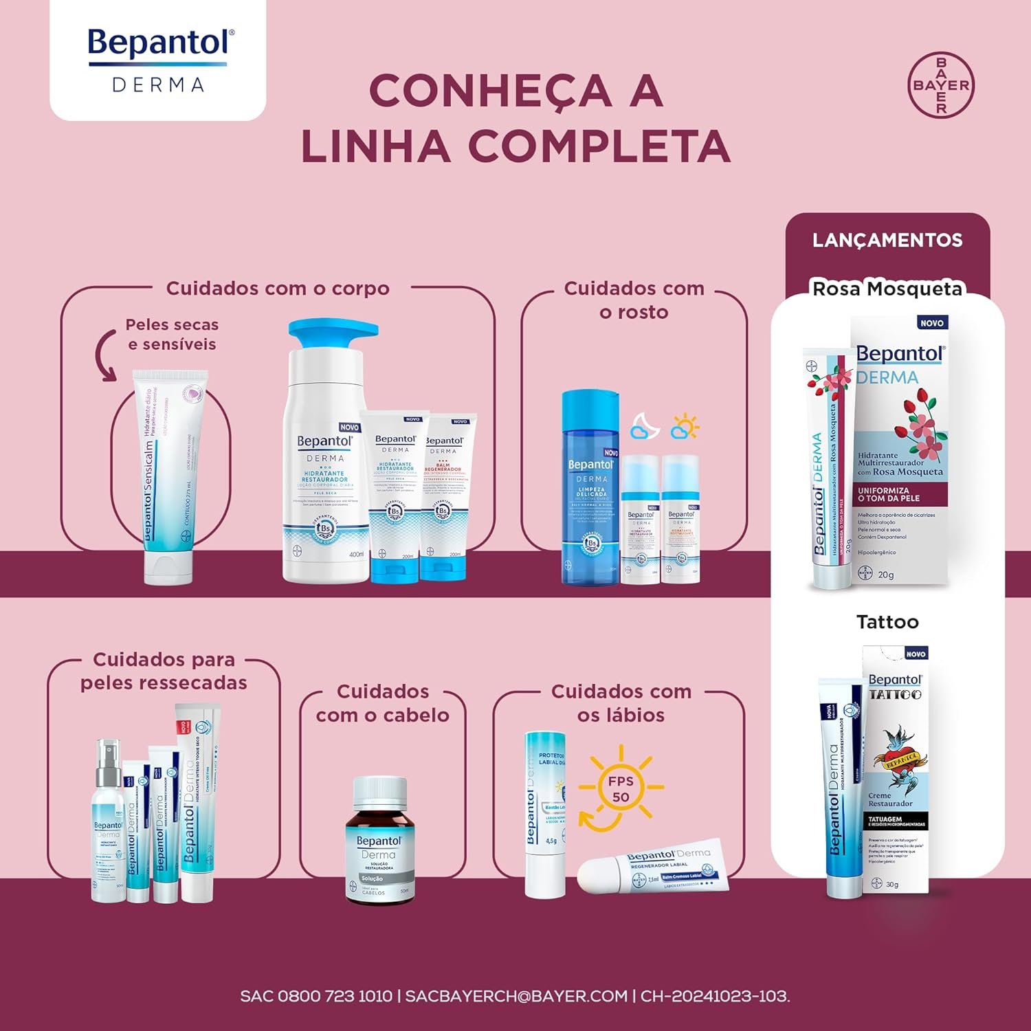 - Hidratação e regeneração profunda em áreas específicas com Bepantol Derma oleo Rosa Mosqueta