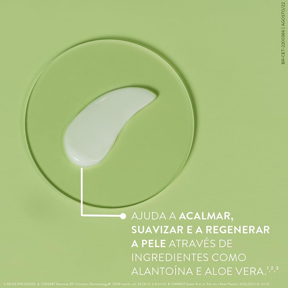 • Ajuda a acalmar, suavizar e a regenerar a pele através de ingredientes como Alantoína e Aloe Vera.