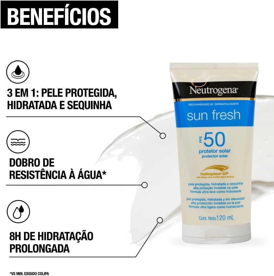- Além disso, Neutrogena Sun Fresh é indicado para todos os tipos de pele, inclusive as mais sensíveis, ajudando a prevenir o envelhecimento precoce e manchas causadas pelo sol.